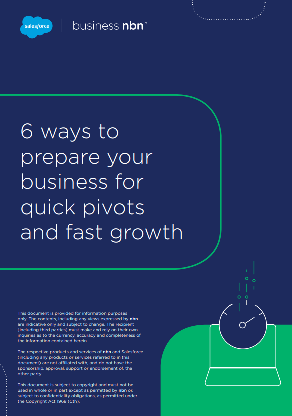 * This blog summarises some of the key findings from a document which was produced by nbn and Salesforce. The information contained in the document is general in nature. It is not intended to constitute, and should not be relied on as, commercial or legal advice for your particular circumstances. You should seek independent advice, before acting on information contained in this blog or the whitepaper. nbn does not guarantee or warrant the accuracy, completeness or currency of the information provided in this blog or the document. The respective products and services of nbn and Salesforce (including any products or services referred to in this blog or the document) are not affiliated with, and do not have the sponsorship, approval, support or endorsement of, the other party.