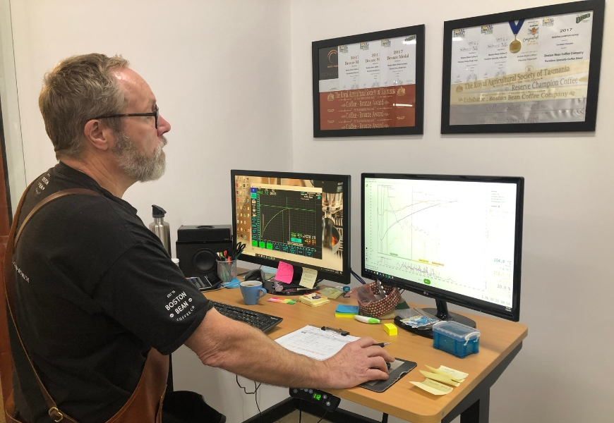 By 8am each morning, Richard is glued to the monitor of the Loring S15 Falcon™ smart roasting machine, analysing the data coming off the monitor with the focus of a surgeon in theatre.