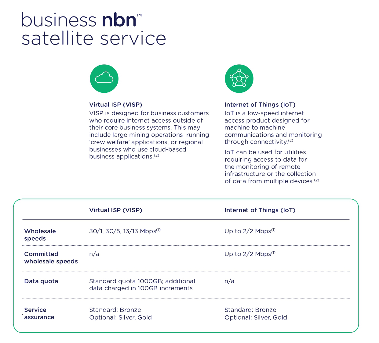 Accordingly, the first wholesale business nbn™ Satellite Service products available focus on remote business needs for high-data capacity and IoT.