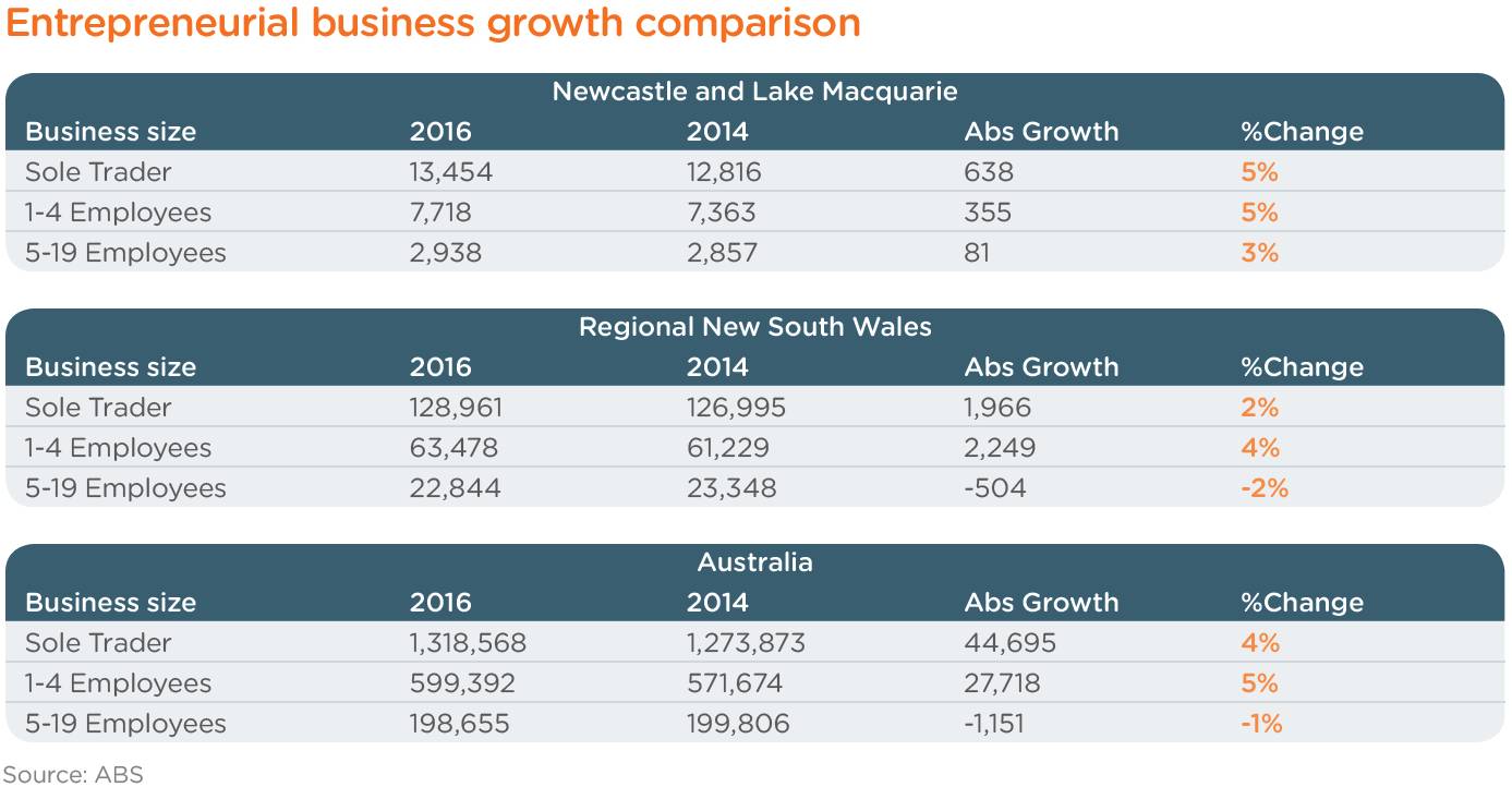 In the category of micro-businesses, Newcastle saw five per cent growth between 2014 and 2016. Small businesses increased by three per cent in the seaside city, while the rest of the country saw an overall drop in these types of ventures.