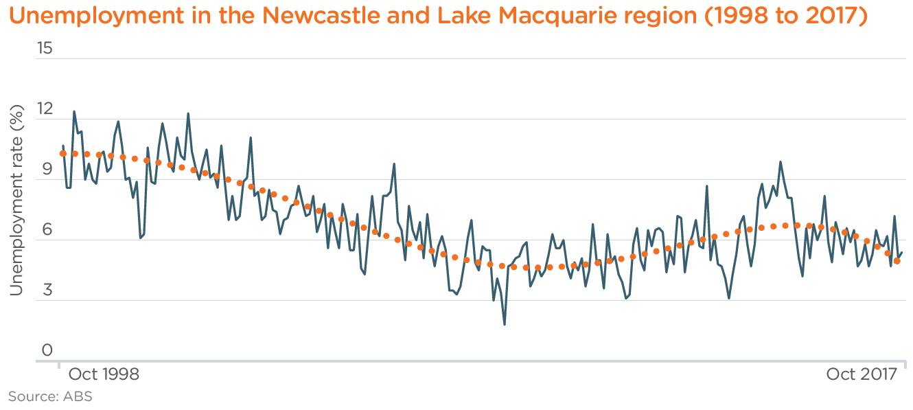The city now has an unemployment rate of about 5.7 per cent, which is roughly in line with the national average. And Australia’s seventh largest city now stands out as a legitimate lifestyle location for jaded Sydneysiders looking for a more relaxed, less expensive place to live.