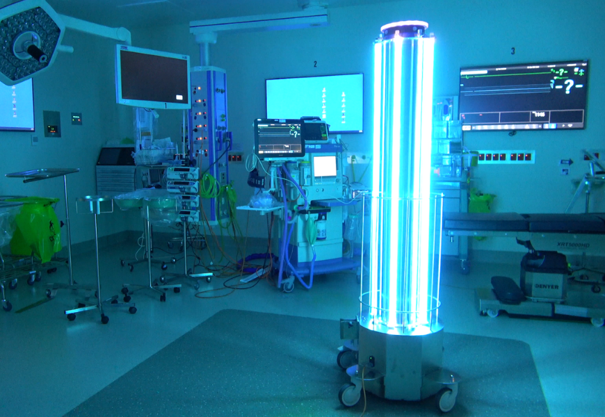 Recently launched to market, Bluewave uses high output ultraviolet (UVC) to cleanse a patient room or other hospital environment in a matter of minutes.