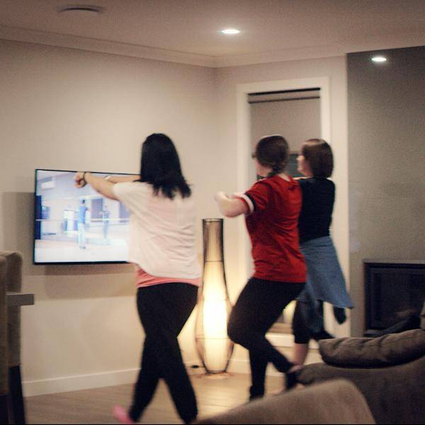 Amy Fulthorpe, her sister, and cousin in Bathurst taking hip-hop dance lessons online from Penrith-based choreographer Jayden Rodrigues.