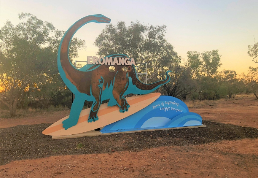 To stick a pin in a map of Australia to mark the town of Eromanga, start at Brisbane, then trace your way out west towards the Queensland-South Australian border.