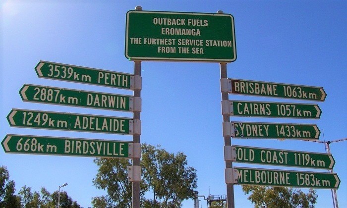 Spanning more than seven million square kilometres, here in Australia, being the furthest town from the sea is a much greater feat.