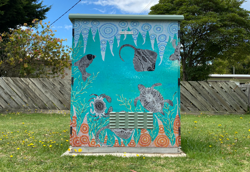 For residents of Melbourne’s beautiful Mornington Peninsula, Bunurong/BoonWurrung Country nbn™ Fibre to the Node (FTTN) cabinets are not only helping to provide the community with fast broadband access, they’re an outdoor art gallery too.