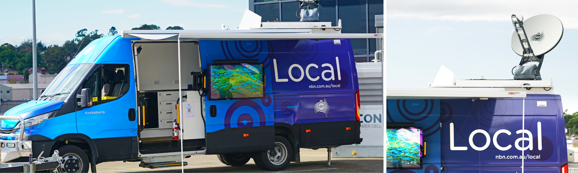 Designed to be as self-sufficient as possible, the Emergency Response Vehicle (ERV) is packed with equipment ranging from multiple internal and external facing digital screens, kitchen facilities, office workspaces, video conferencing facilities, power generator and nbn™ Sky Muster™ satellite internet connectivity.