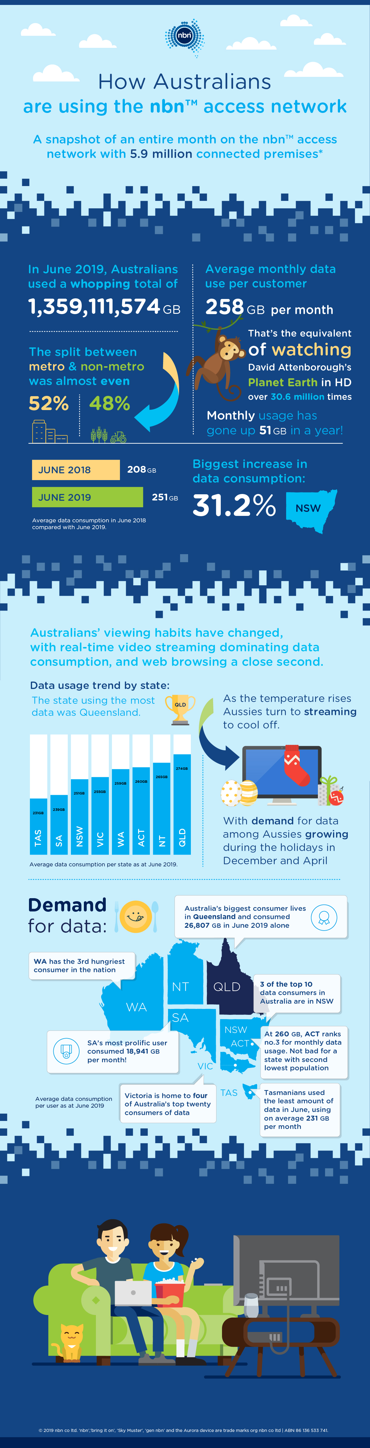 Australians connected to the nbn™ broadband access network are eagerly tucking into data to make the most of the perks that come with connectivity.