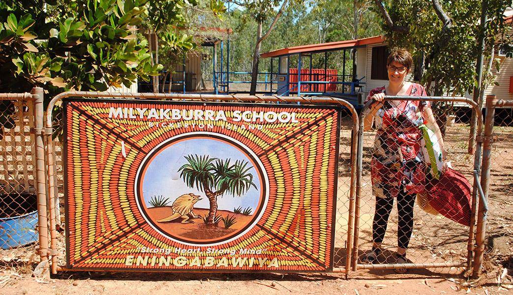 A short stroll down the street and we touch base with Teaching Principal at the local Milyakburra school, Sarah Rowe.