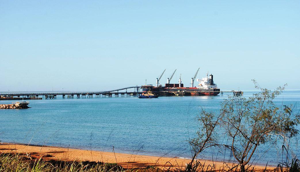 A ship waits to take on Manganese mined from Groote Eylandt.