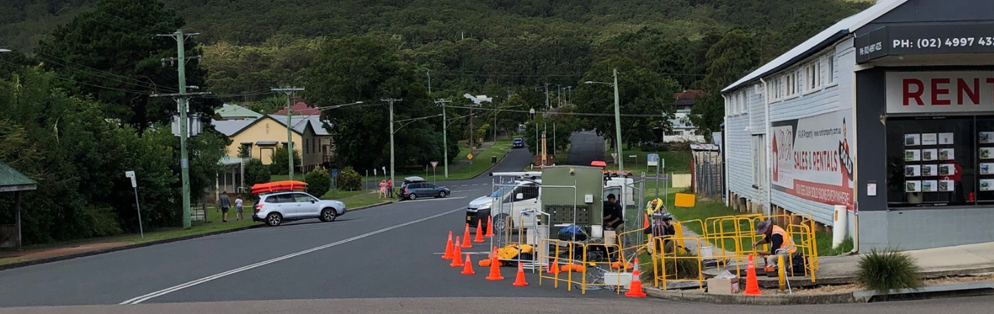 While a total of 12 nbn™ node cabinets and ‘mini cabinets’ (also known as Compact Sealed DSLAMs) needed either repair or replacement as part of nbn’s emergency response, continuing wet weather and waterlogged ground meant nbn’s team couldn’t get in to replace the damaged cabinet at Bulahdelah.
