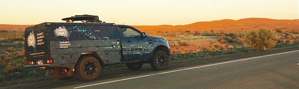 The Road Muster truck takes the full experience of a Sky Muster™ service to the people – by using its satellite dish to find a Sky Muster™ signal that can then deliver broadband services to the two large touch-screen television/computers on board.