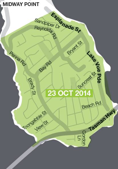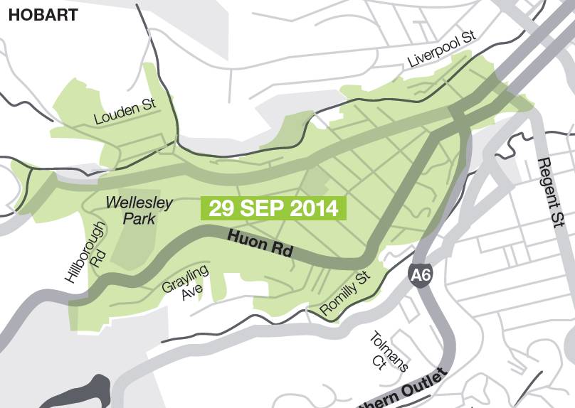 West Hobart, Battery Point, Sandy Bay, Dynnyrne, Herringback, Huonville, Richmond, Sorell, Kingston Beach, Triabunna, South Hobart, Midway Point and Snug |