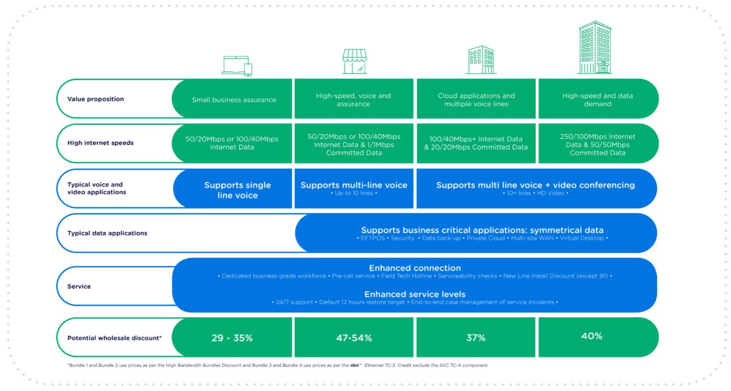 - Additional wholesale discount bundles will also be available in respect of each of NBN Co’s other bandwidth profiles.