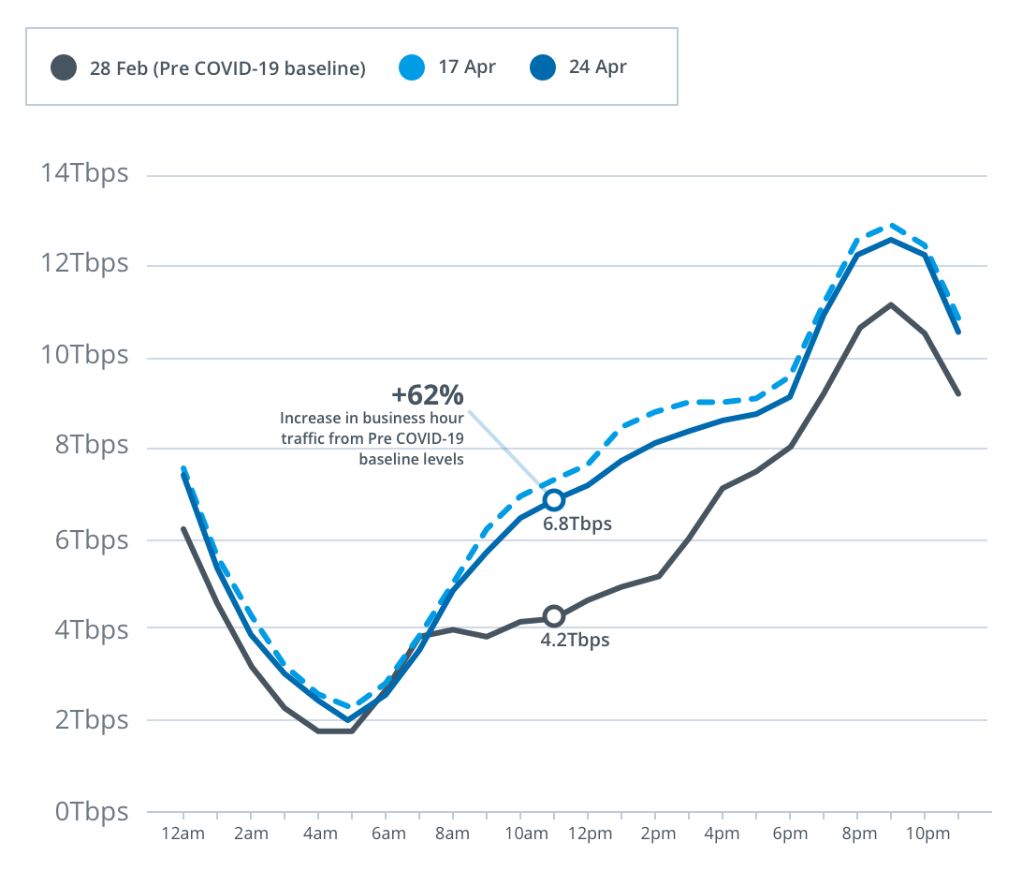 “These metrics show that while broadband use has significantly increased during this pandemic, we have also seen network demand settle into a new range where usage remains at higher levels throughout the day, compared to the pre COVID-19 baseline,” Mr Whitcomb said.