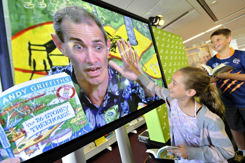 Popular Australian children's author Andy Griffiths read extracts from his international best-selling books and spoke about his writing life with children at the Max Webber Library via an NBN connection made possible by phone and internet service provider Optus.