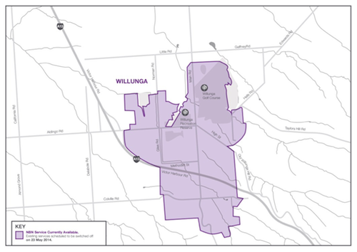 For the first time in Australia, the NBN will replace most existing landline home and business phones, ADSL internet and Telstra cable internet services in parts of Willunga, which are scheduled to be officially switched off from 23 May 2014 (locations outlined in map below).