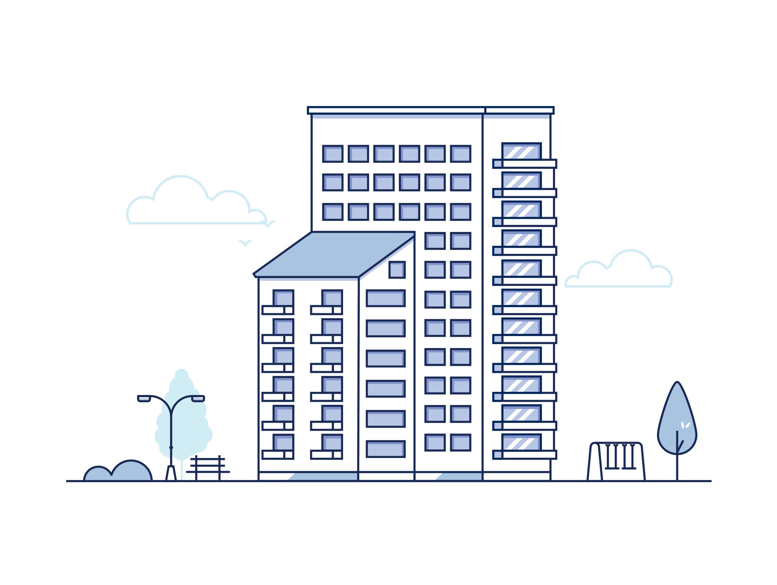 - Apartment buildings: including high-rise, mid-rise, or low-rise residential complexes
